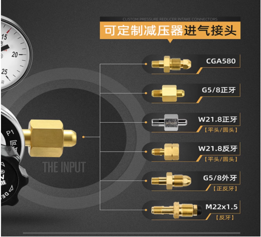 進(jìn)氣接頭常規(guī)配置:G5/8正牙
